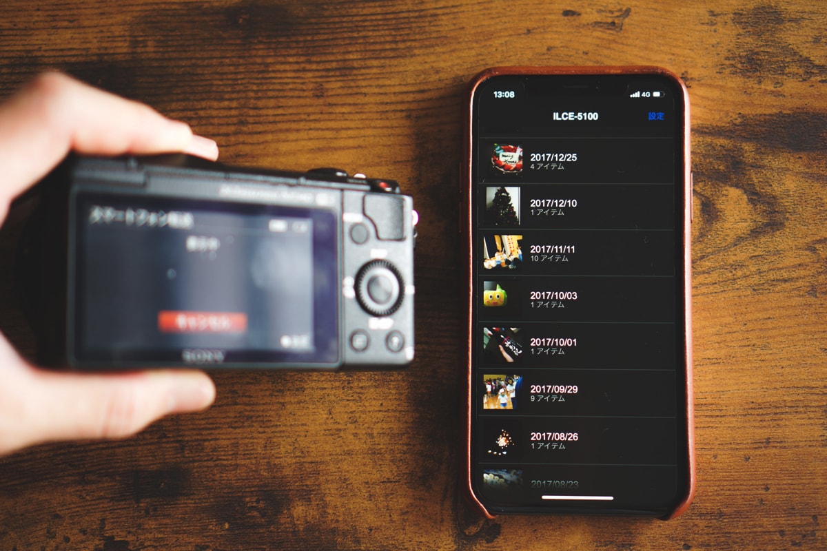 「PlayMemories Mobile」というアプリをダウンロードするとWi-Fiでスマホとカメラを繋ぐことができます。